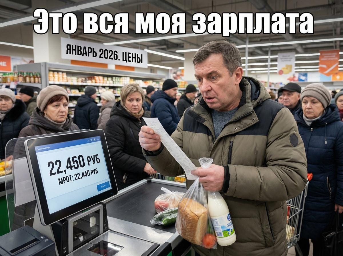 Новогодние елки уже разобрали, мишура убрана, а вот восторг от праздников сменился холодным ужасом. Для большинства россиян январь 2026 года стал не временем продолжения веселья, а моментом суровой правды. Первый поход в магазин после каникул выбил почву из-под ног многих: чтобы просто снова наполнить холодильник продуктами, теперь придется отдать сумму, равную целому МРОТ. Индикаторы инфляции, о которых так много говорили экономисты в прошлом году, в 2026-м превратились из сухих цифр в реальный чек из супермаркета. Люди и раньше жаловались на подорожание, но начало этого года стало своего рода «точкой невозврата». Соцсети пестрят фотографиями чеков и возмущенными постами. Пользователи делятся историями, как, купив стандартный набор: молоко, хлеб, немного мяса, крупы, овощи и детское питание - по пути к кассе чувствовали себя спокойно, а при виде итоговой суммы у них буквально перехватывало дыхание. Подошел к кассе, набрал еды на неделю, без деликатесов, просто чтобы поесть, - делится