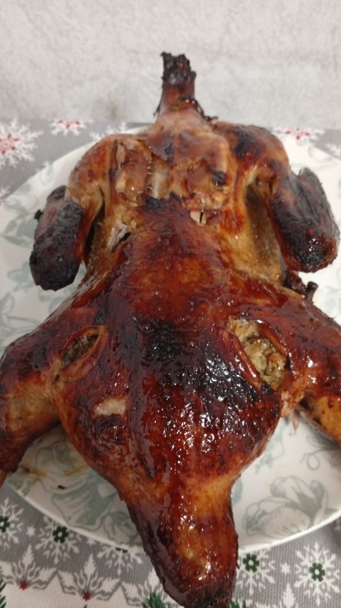 Причём была тушка не просто натёрта специями , а полностью залита маринадом. Маринад , кстати , дети делали из имеющегося : большой апельсин , соевый соус , мёд жидкий "из пятёрочки". Чеснок тоже не зря чистили. Да,иногда я прислушиваюсь к советам в блоге, но только к тем которые вижу что и на пользу и осуществить их я в силах.