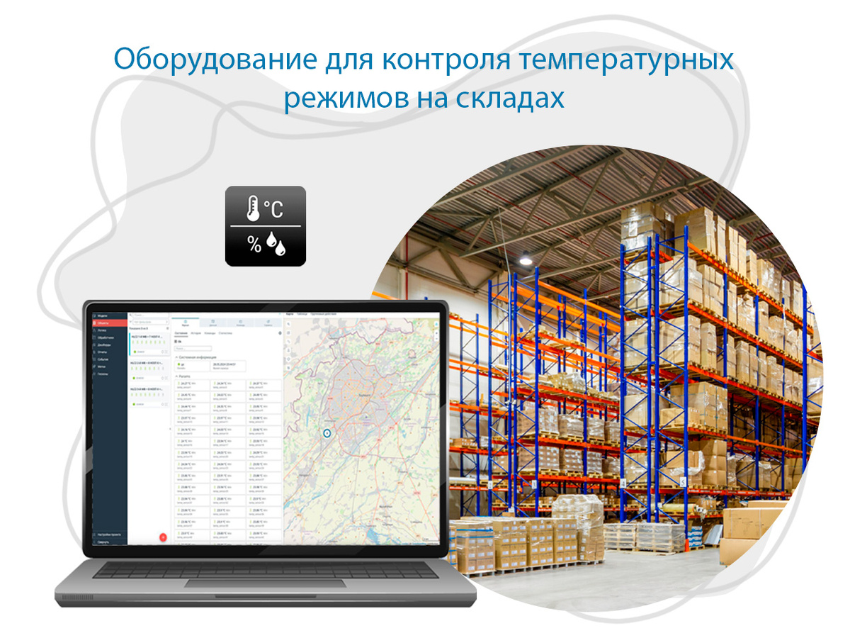 Температура и влажность на складских объектах сегодня - это не просто технические параметры. От них напрямую зависит сохранность товаров, финансовые риски и стабильность бизнес-процессов. Особенно критичен правильный климат для хранения скоропортящихся продуктов, фармацевтической продукции и дорогостоящих материалов. Даже незначительные отклонения от допустимых значений могут привести к порче товара, списаниям и потерям. Поэтому контроль температурных режимов становится обязательной частью современного управления складом и логистикой. Современные системы мониторинга позволяют в режиме реального времени контролировать климатические параметры на складе или в холодильных камерах. С их помощью можно: Такой подход помогает не только предотвращать потери, но и повышать прозрачность складских процессов. Подобные решения давно применяются в логистике и транспортной отрасли. При объединении датчиков температуры и влажности с системами ГЛОНАСС-GPS мониторинга пользователь получает расширенные во