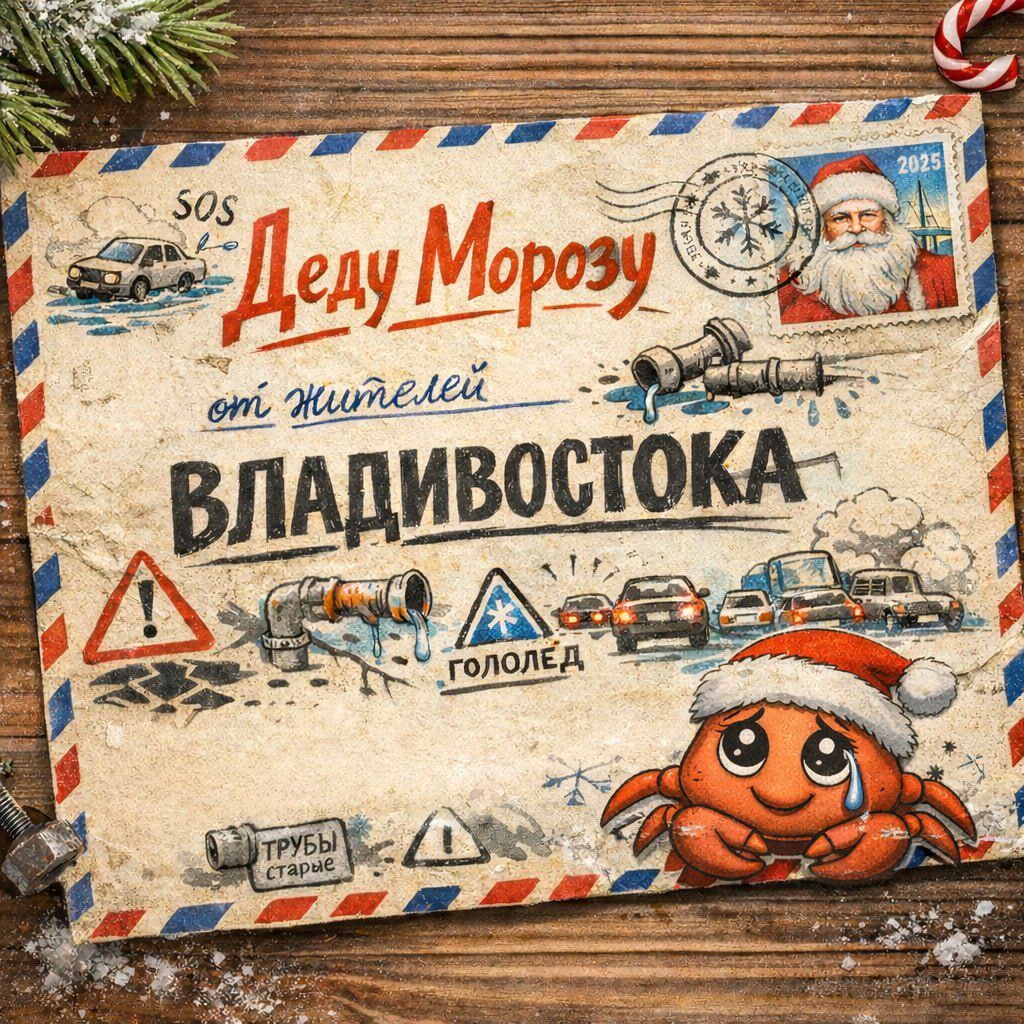 Дорогой Дедушка Мороз, пишут тебе жители Владивостока. В этом году мы старались не жаловаться. Честно. Мы привыкли. Не требовали невозможного. Просто молча объезжали ямы, дышали ароматами канализации и делали вид, что так и задумано. У нас, если кратко, всё стабильно. Стабильно плохо. Каждый дождь — квест. Каждый снег — ЧС. Каждая зима — внезапно. Каждое лето — “денег нет, но вы держитесь”. Мы привыкли к ямам, так как асфальт по весне тает как снег. К трубам, которые рвутся каждую зиму — как по графику. К воде, которая то есть, то «ведутся работы». К снегу, который каждый раз — неожиданность. 🐌За это время: — мэры менялись чаще чем трубы, — команды обновлялись, — стратегии развития писались и забывались, — сроки сдвигались уверенно и в светлое будущее. А город — всё тот же. С изношенными сетями, с авариями «внезапно», с домами, где тепло и горячая вода — вопрос удачи. 🏖Зато у нас есть: туристический налог, фестивали, ВЭФ, шезлонги у моря, благоустройство — там, где красиво на фото. А