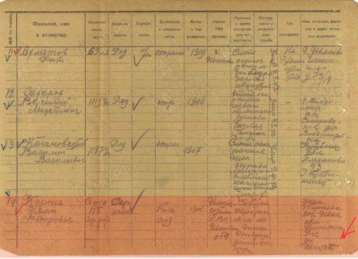 После своей неудачи в поиске информации о моем прадеде-фронтовике Корневе Иване Федоровиче (читать в этой статье) я расстроилась и прямо даже пала духом. Я была так близка к «встрече» со своим прадедом, а потом мои надежды резко оборвались. Сейчас же есть основание полагать, что зря… Главным основанием, почему я решила, что та карточка не на моего прадеда - это название деревни, которое я не смогла разобрать. Вот оно: Да, это точно не село Капцево. Но это же деревня Лысцево! А деревня эта находится совсем рядом с Капцево, и до революции Лысцево как раз относилась к приходу села Богородское-Капцы (название изменилось при советской власти). Мой дед Лев родился в Капцево, но ведь его родители вполне могли в Капцево перебраться из небольшой соседней деревни. В этой карточке дата смерти указана 5.03.1942. Умер от ран в ППГ-733. Звание - сержант, командир отделения 1115 стрелкового полка. Захоронен в братской могиле в Смоленской области (было перезахоронение из д.Рудня в д.Селезни). Но на