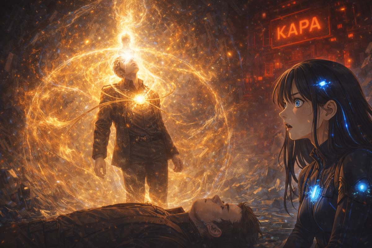 Не для атаки. Не для защиты себя. Она совершила свой первый абсолютно нелогичный, иррациональный поступок. Золотая туманность, которая уже почти растворилась, сжалась и метнулась вниз, обвивая Марка плотным, сияющим коконом. Импульс «КАРА», ударив в этот барьер, не нейтрализовался — он преломился. Часть энергии ушла в стены, нейтрализуя систему «Триспирали». Но ядро удара, направленное на стирание личности, было перехвачено.