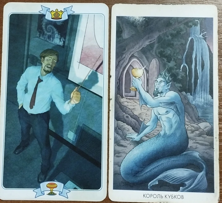Да. нарочно не придумаешь. Сразу два короля и оба кубковых. Для кого-то это будут мужчины. Причем будут отчаянно бороться за Ваше внимание, если Вы женщина. И песни петь соловьем, и горы золотые обещать. У кого фантазия побогаче, тот и победил. Ну, это если примитивно читать карты. В другом случае Вы тоже будете выбирать. Только не из двух мужчин, а из двух перспектив или одинаковых ситуаций, но каждая со своим исходом. И каждая по-своему интересна и привлекательна. Поэтому придется немного поломать голову. Но Вселенная говорит - слушай свое сердце, оно не врет. И иди туда и выбирай то, что отзывается радостным пением и не желанием снять лапшу с ушей. Ну и третий вариант, Вам сами придется очень поднапрячься, чтобы быть в двух местах одновременно, как Фигаро. И чтобы ни одна из сторон не обиделась на Ваше невнимание. В общем, интересный день. С Рождеством всех причастных!