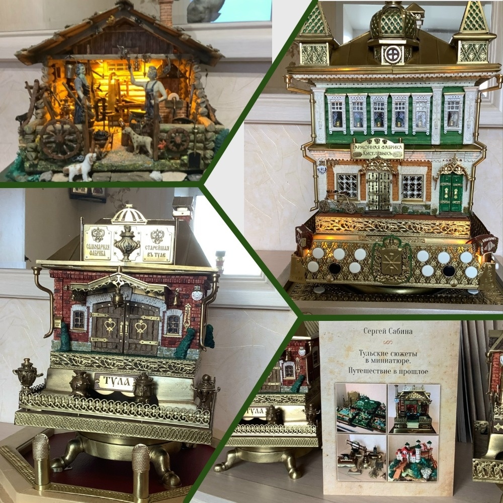 В пространстве "Союз" 3 января в галерее первого этажа открылась выставка миниатюр тульского миниатюриста Сергея Сабины. Это не первая выставка Сергея в этом году в нашем городе. Мини-Ясная Поляна, Кремль, оружейный завод, Левша и многие-многие другие творения автора гостили в драматическом театре. Все экспонаты выставки были представлены в статье на канале "О Туле с любовью". Тульский академический театр драмы в День 80-летия Великой Победы. Премьера театрального сезона "В бой идут одни старики". Бывший слесарь оружейного завода уже 20 лет собирает свою Тулу в миниатюре по кусочкам из латуни и дерева. Четыре дома на новогодние праздники разместились в галерее делового пространства "Союз" и составили целую мастеровую тульскую улицу. В вечернее время в домиках зажигается свет, делая их В первой миниатюре представлена кузница и двое занятых тяжёлым трудом рабочих. Один из них разительно похож на Императора Петра I, а второй на Левшу. Старая Тула славилась своими мастерами. В этой миниат