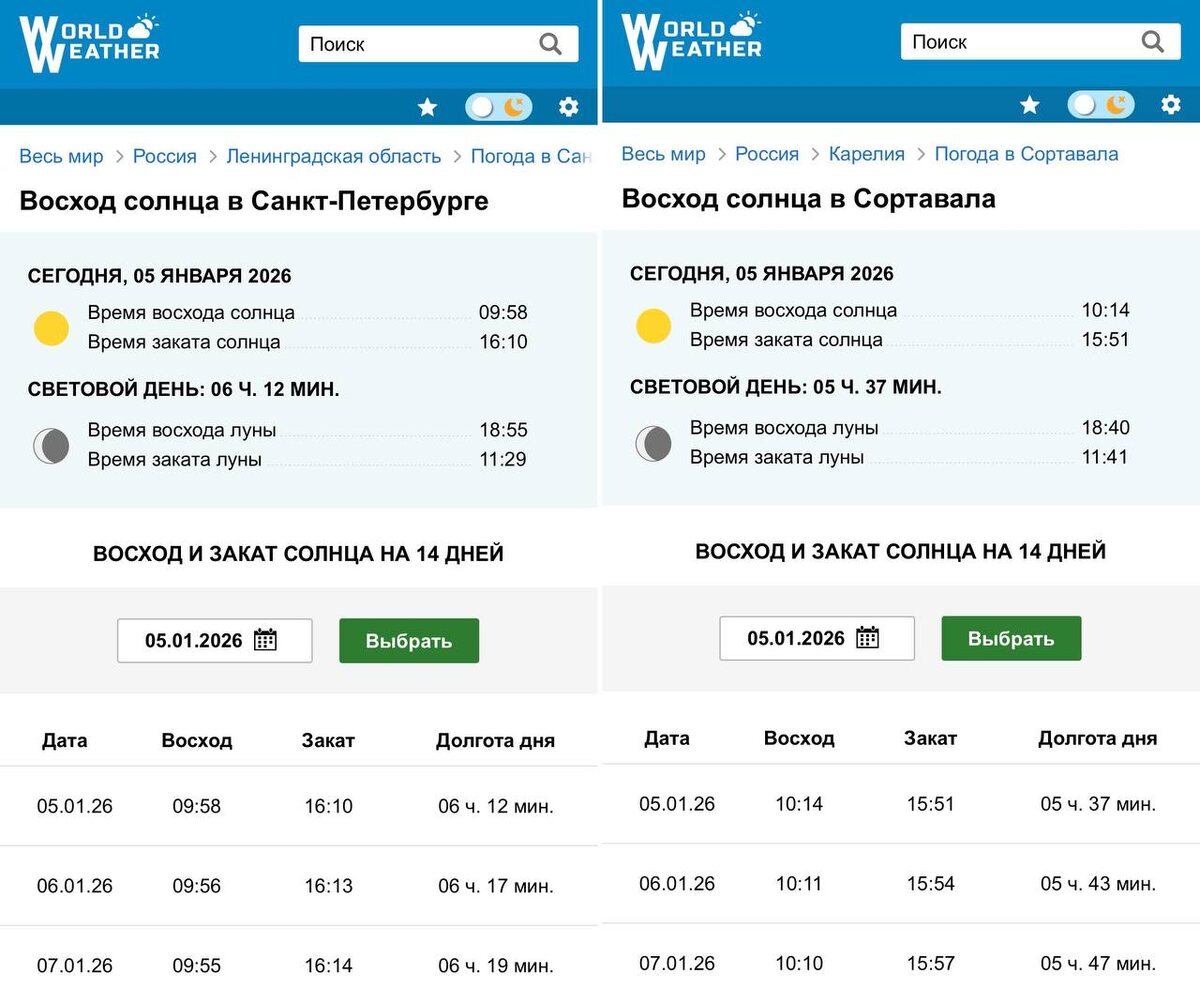 Так, ну, я не знаю, как вы, а я вернулся с каникул и буду потихоньку готовиться к рабочим будням, но уже из дома. Где я был? Ездили с семьёй в Сортавалу (это Карелия), снимали там домик и катались по местным зимним активностям и красотам. Что могу сказать? Зимняя Карелия - это отдельная сказка. Не такая, как летняя, но от этого не становящаяся хуже. Равноценная. Но я заметил две взаимосвязанные вещи, которые касаются солнечной энергетики. Да, ночи здесь всё ещё длиннее, чем в Питере (например, в день отъезда 6 января - на целых 26 минут), но день прибавляется быстрее, чем в Питере. В тот же день отъезда - на 6 минут против 5 в Питере. Так что скоро здесь день будет длиннее и, если что, в Сортавале нет полярного дня, но самый длинный день тут длится почти 20 часов и это почти на час длиннее, чем в Северной Столице. Так что за это звание город может ещё побороться. Хотя бы в климатическом плане. Кстати, про увеличение светового дня я рассказывал в первом выпуске подкаста этого года в