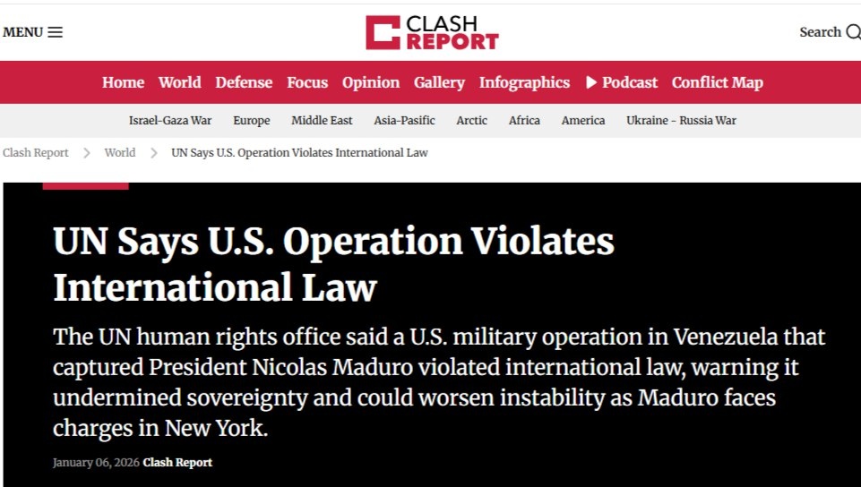 Управление ООН по правам человека заявило, что военная операция США в Венесуэле, в ходе которой был взят в плен президент Николас Мадуро, нарушает международное право, и предупредило, что это подрывает суверенитет страны и может усугубить нестабильность, поскольку Мадуро предъявлены обвинения в Нью-Йорке.