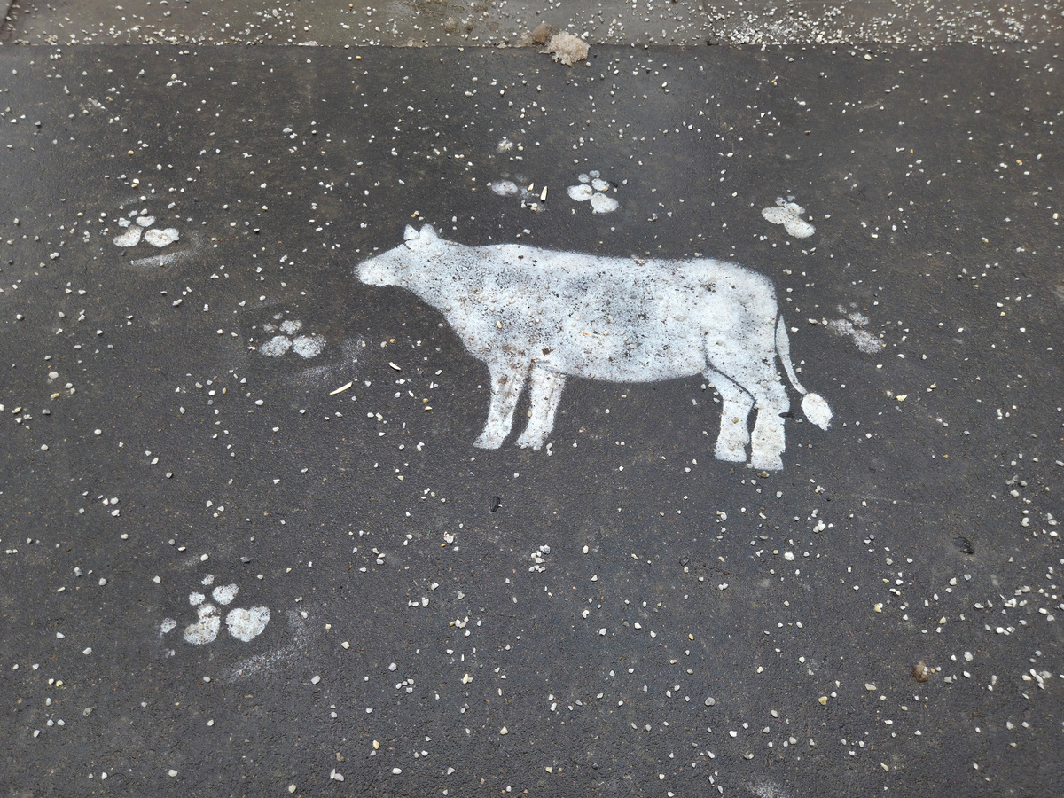 Всё перечисленное в программе фигурировало. В непривычном виде, в интересном виде. Основным в программе дня было совсем другое, но перечисленное выше тоже стоит упоминания или хотя бы фотки показать. У обычного подъезда на тротуаре вот такое. Видимо, с помощью трафарета корову изобразили? Мне нравится! Так как я почти нигде не бываю, только теперь увидела первого снеговика. Страшненький, кривенький. И уже собачками разукрашенный. Зато с настоящей морковкой! И явно рыбак! Удача, похоже, снеговика не минует. Ещё чуть, и он удачно на удочку подцепит припаркованный неподалёку Рено! Сегодня я "распаковала" презент, мне одна из моих золовок прислала за пару дней до Н.Г. Сало, домашнее! Было в контейнере, полностью засыпано крупной солью. Процесс засолки должен был идти ещё несколько дней, а до того продукт следовало держать в прохладном месте. И внутрь не лезть. Честно выполнила. Сегодня раскопала в соли, соль смыла. Красота ведь! Чуть подсушила. Нарезала довольно узкими ломтями. Попробова