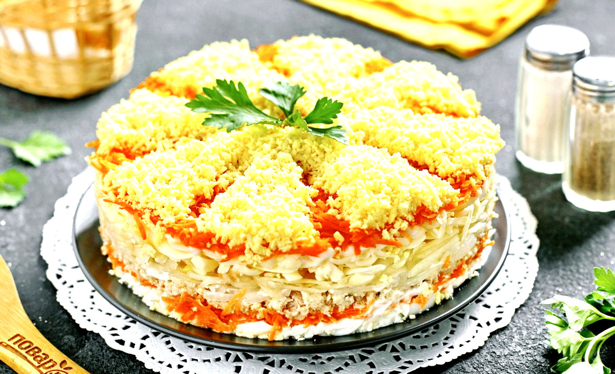 Помню, как в девяностые готовила «Мимозу» строго по записи из маминой тетрадки. Пять слоёв, майонез между каждым, сверху — желтковая крошка. Красиво. Празднично. И... абсолютно пресно после второй ложки.