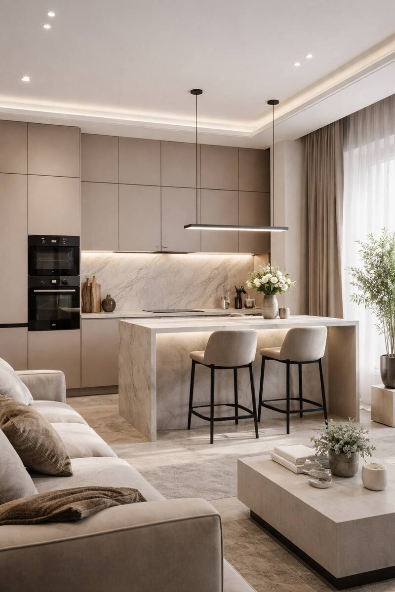 Многие уверены: если мебель выглядит стильно и «как в журнале», значит она стоит космических денег. На практике всё иначе. Визуальную «дороговизну» создают не цены, а грамотные дизайнерские решения. Ниже — 7 приёмов, которые используют профессионалы при проектировании корпусной мебели. 1️⃣ Шкафы и кухни до потолка Мебель, доходящая до потолка, сразу воспринимается дорого. Почему это работает: • нет ощущения «обрезанного» верха • помещение выглядит выше • отсутствует визуальный шум сверху 2️⃣ Спокойные матовые оттенки Глянец и активные цвета быстрее выдают бюджетность. Матовые фасады в нейтральных тонах всегда выглядят дороже. Лучше всего работают: • бежевый • тёплый серый • графит • оттенки «камня» и «песка» Такие цвета не устают глаз и хорошо сочетаются с любым интерьером. 3️⃣ Минимум ручек Чем меньше лишних деталей — тем дороже выглядит мебель. Используются: • push-to-open • скрытые профили • интегрированные ручки Фасады становятся цельными, чистыми, а кухня или шкаф смотрятся как е