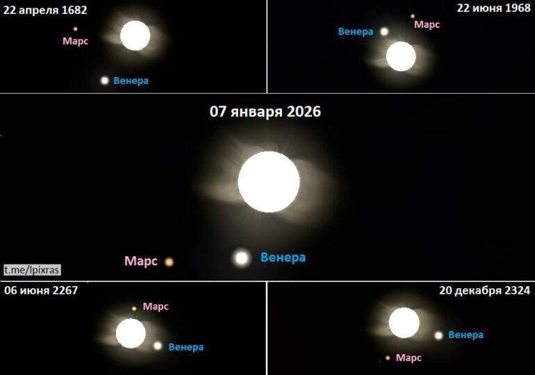 Сегодня вечером на небе можно будет наблюдать редкое астрономическое событие — сближение Венеры и Марса. Две планеты расположатся почти на одной линии с Солнцем, что создаст впечатление яркой «Вифлеемской звезды». Следующий шанс увидеть подобное явление представится лишь в 2038 году.