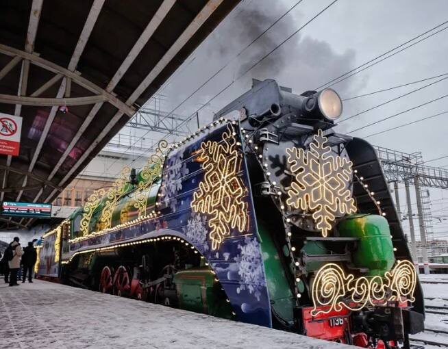 А тем временем поезд Деда Мороза прибыл в Санкт-Петербург на станцию Новый Петергоф