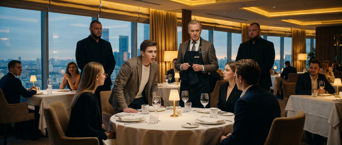 — Слышь, ты! Долго я ждать буду? За элитным столиком у окна сидела компания. Три парня и три девицы. "Золотая молодежь". Тот, что в центре — в дорогом пиджаке и с часами за миллион — щелкал пальцами. Ко мне подошел администратор, Дима. — Сергей Викторович, там за третьим столиком гости... сложные. Официантка Лена плачет в подсобке. Говорят, она "страшная" и "портит аппетит". Требуют другого официанта. Я нахмурился. Я сегодня был не в духе. Поставщики подвели с рыбой, шеф-повар заболел. Я, владелец ресторана "Панорама", сам вышел в зал, чтобы контролировать процесс. Был в простой черной рубашке и брюках, помогал ребятам разносить заказы. — Я сам их обслужу, — сказал я Диме. — Дай фартук. — Сергей Викторович, не надо. Они хамы... — Давай. Я повязал фартук и подошел к столику. — Добрый вечер. Я ваш новый официант. Что желаете? Мажор окинул меня презрительным взглядом. — О, этот хоть рожей вышел. Слышь, халдей, метнись кабанчиком. Виски "Блю Лейбл". Бутылку. И закуски самой дорогой. Быстро