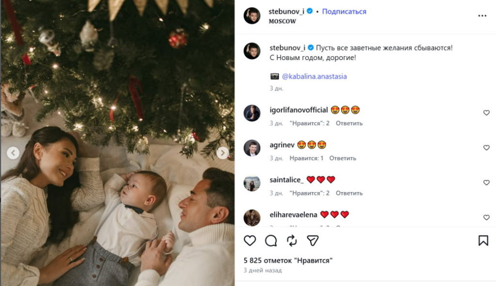Иван Стебунов и Елена Власова поженились в 2018 году. 7 июля 2025 года у пары родился первенец. Судя по всему, артист, когда-то отличавшийся ветреностью, уже давно забыл о любовных похождениях (первый брак брюнета с Мариной Александровой распался из-за измены). Последние полгода микроблог артиста пестрит трогательными кадрами, которыми он не стесняется делиться с поклонниками. В конце декабря Стебунов опубликовал пост с отдыха в теплых краях, где он побывал с семьей. «Заветные желания сбываются», - прокомментировал публикацию счастливый артист. Бледанс стала пепельной блондинкой, а жена Ивана Стебунова показала себя после родов Несколькими днями ранее актер разместил очередную серию снимков. На этот раз Иван продемонстрировал идиллию с полугодовалым Германом, который встретил первый в своей жизни Новый год. Иван Стебунов с женой и сыном «Пусть все заветные желания сбываются! С Новым годом, дорогие!»- обратился артист к подписчикам. Обнародованные Стебуновым фото привели фанатов в вост