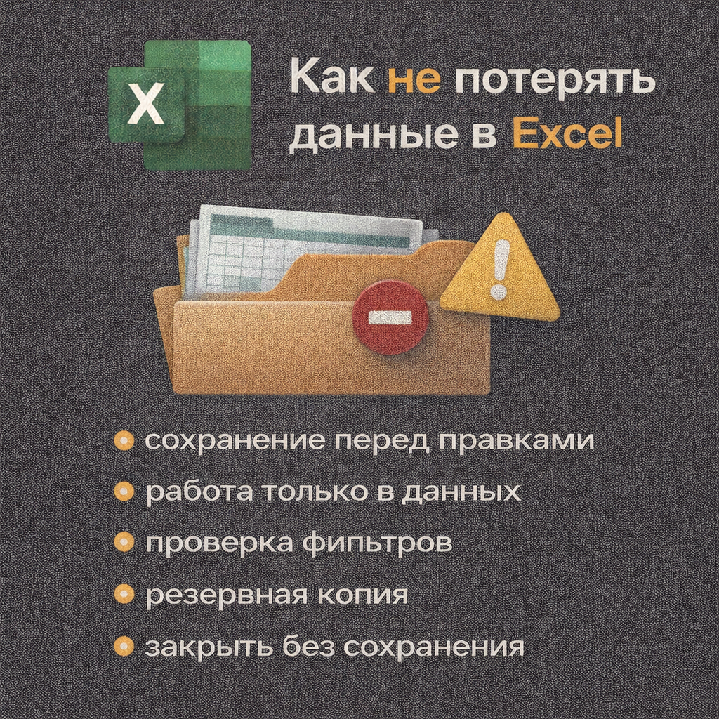 Как не потерять данные в Excel и не искать потом «куда всё делось». Практические правила работы в Excel, которые помогают избежать потери данных и восстановить контроль над файлами. Почему данные пропадают. Почти никогда — из-за Excel. Почти всегда — из-за действий человека. Типовые сценарии:
