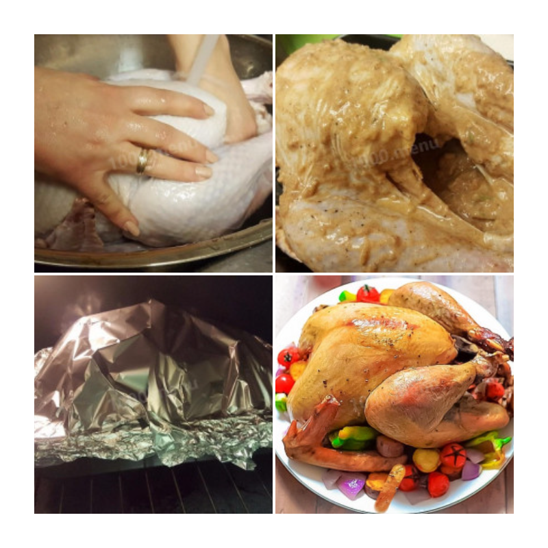 ● Поместите индейку на противень и накройте фольгой.