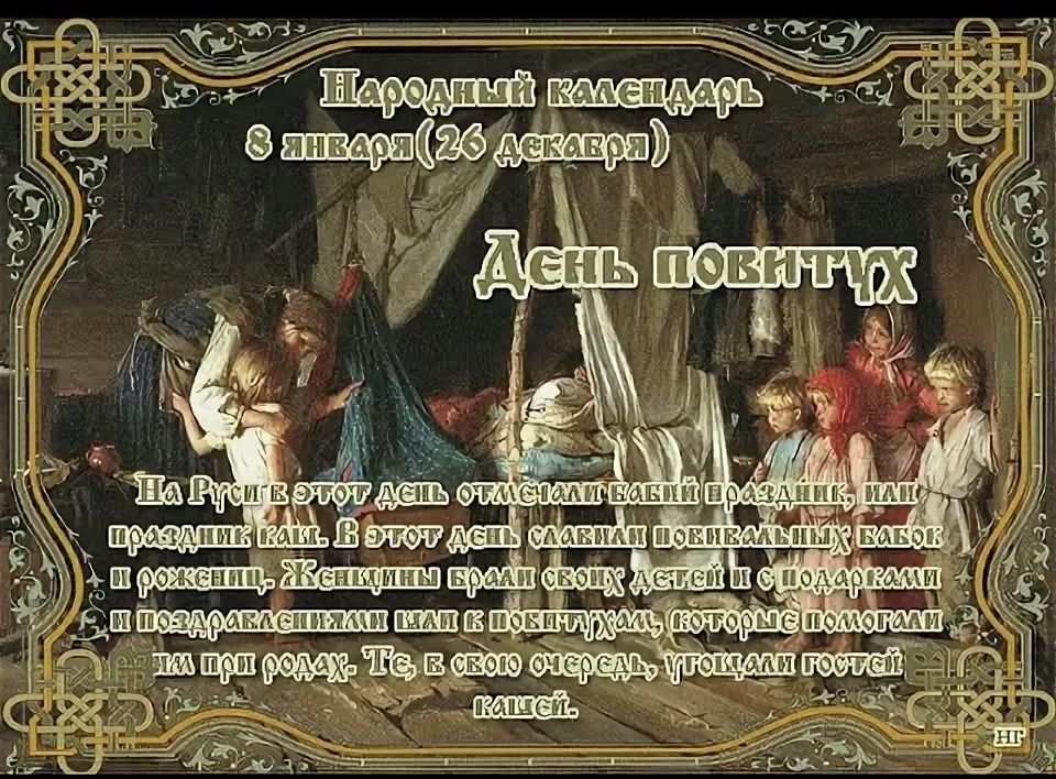 ✔️Запрещено 8 января что-либо брать из рук повитухи – может ребенок заболеть. Поэтому если повитуха что-то давала, просили ее этот предмет положить на пол или стол, чтобы потом его забрать.