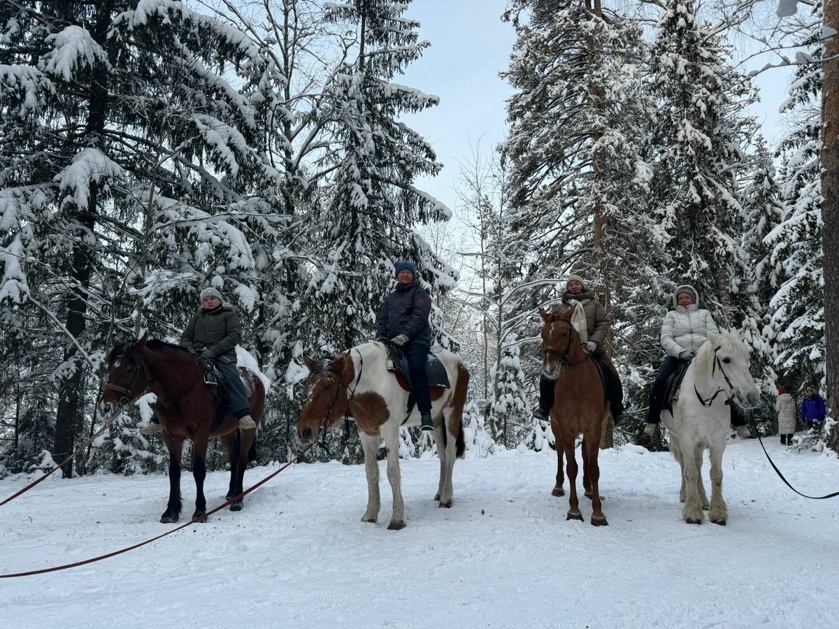 ! Сегодня третий поход в этом году и он был необычный, а с прогулкой на лошадках! Среди снежного зимнего леса по тропинкам гуляли наши участники и лошадки. Передать восторг трудно, ведь здесь соединилось почти всё: красивое место и лес, ухоженные лошадки, дружные участники похода и помощники. После прогулки мы отобедали и познакомились с обитателями: мурчащим без остановки котом Тимофеем и жирным и Жориком, а еще двумя песиками. Затем посмотрели пони и покормили тех лошадок, что сегодня нас возили на прогулке и тех кто просто самый красивый в стойле. Ну, а еще был трекинг к заброшкам старого кирпичного завода Вырицы, что находится в лесу. Пара руинированных зданий, кирпичи с клеймами К-З В (Кирпичный завод Вырицы), несколько заброшенных помещений с признаками былого обитания. Никого из аборигенов этих мест, так и не встретили. А дальше красивые арки заснеженых деревьев и просека привели обратно нас в электричке!
