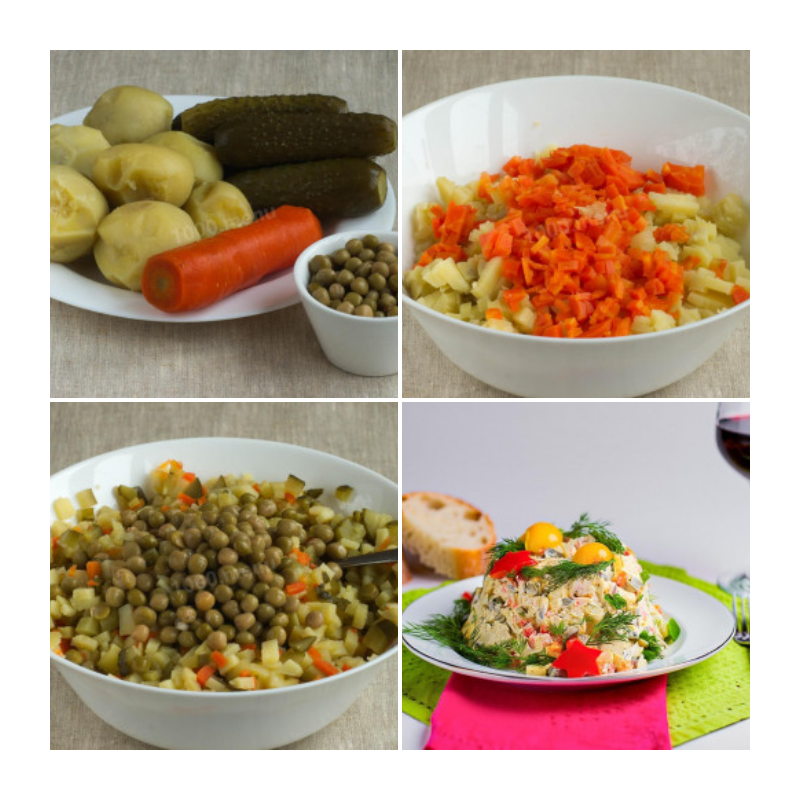 Для приготовления вегетарианского оливье вам понадобятся следующие ингредиенты: