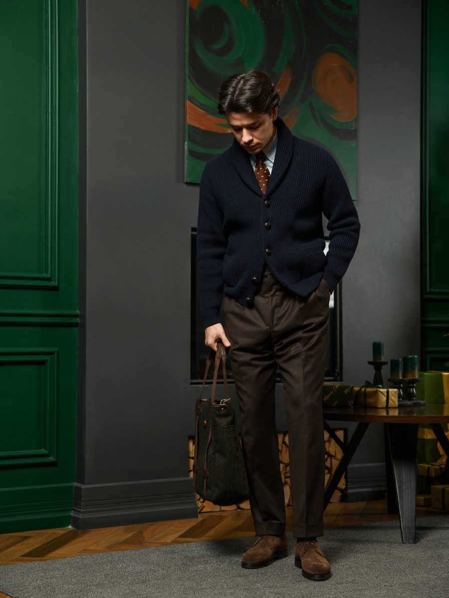 Согласитесь — в осенне-зимний период хочется, чтоб одежда была не только теплой, но и уютной. Поэтому сегодня речь о фактурных тканях. Овечья шерсть — это настоящий must have в любом гардеробе. И одна из самых универсальных шерстяных тканей — это фланель, рыхлая, мягкая и слегка ворсистая ткань. Она, как правило, держит форму и неплохо согревает. Самый распространенный вариант — фланелевые брюки, чаще всего — серые. Но можно взять и рубашку, или бомбер, или overshirt (может быть, даже из хлопка). Благодаря ворсистой фактуре, которая снижает градус формальности, фланелевые вещи прекрасно подходят для повседневного гардероба. Любители утонченности, впрочем, выбирают кашемир. Это не шерсть, а нежный подшерсток коз кашмирской породы (водятся в Непале, Индии, Монголии и Китае). Кашемировые вещи мягки, легки, почти не мнутся — и при этом в несколько раз теплее вещей из овечьей шерсти. Есть еще более изысканный вид кашемира — т. н. baby cashmere. Его получают от козлят все той же кашмирской п