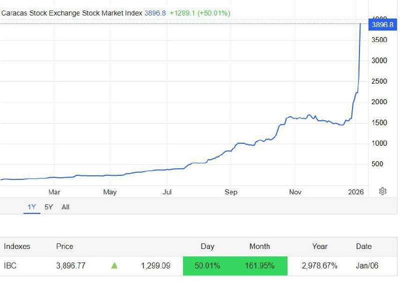 Фондовый рынок Венесуэллы сегодня делает ЗА день +50% и +12000% за год .