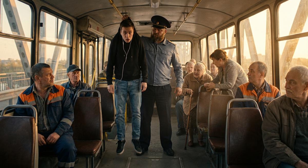 — Слышь, старая, вали в конец салона! Не видишь, я с девушкой еду? В переполненном автобусе назревал скандал. На переднем сиденье развалился молодой парень, лет двадцати. Рядом хихикала его подружка. Над ними стояла бабушка с палочкой. У неё дрожали руки, автобус качало. — Сынок, мне бы присесть, — тихо попросила она. — Ноги не держат... — А мне пофиг! — огрызнулся парень. — Я тоже устал. Я, может, с пар учил всю ночь! А ты на пенсии, тебе спешить некуда. Тебе вообще скоро на кладбище, там и належишься! Салон ахнул. Такая наглость и цинизм были за гранью. — Как тебе не стыдно! — возмутилась женщина с сумками. — Уступи место пожилому человеку! — Заткнись, тетка! — рыкнул студент. — Я заплатил за проезд, сижу где хочу. Закон не запрещает. Он демонстративно надел наушники и отвернулся. Бабушка тихо заплакала, вытирая глаза уголком платка. Автобус вдруг резко дернулся и остановился. Люди пошатнулись. Это было не на остановке, а прямо посреди моста. Дверь кабины водителя открылась. В салон