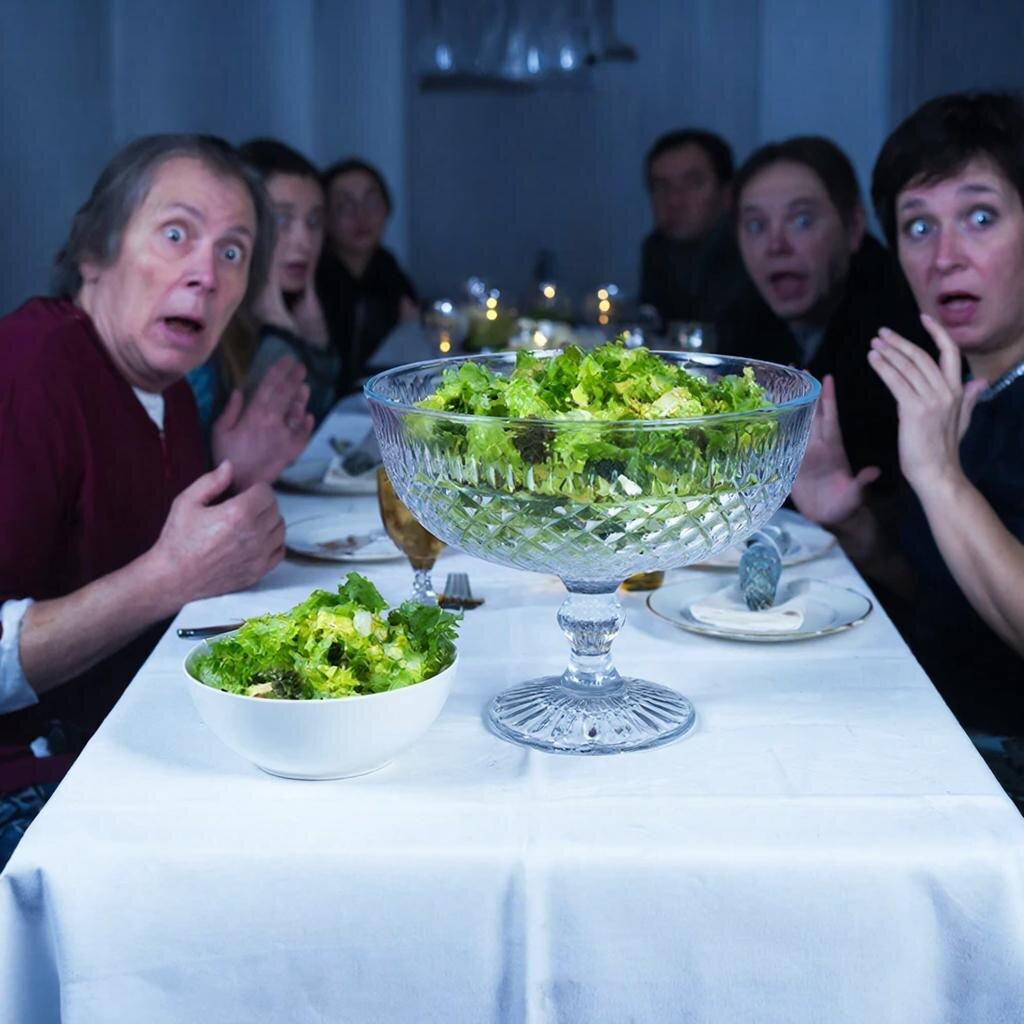 Я поставила перед ней ту самую миску. Простую, белую, столовскую. В ней лежал тот же самый салат «Оливье», что и в хрустальной салатнице в центре стола. Но порция была меньше. И выглядела она, почему-то, убого.