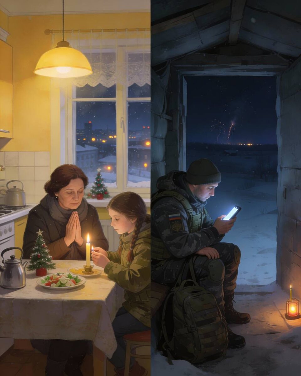 Тихий вечер, когда в домах гаснет суета и зажигаются первые свечи: у икон, на подоконниках, в сердцах. Кто‑то сейчас месит салаты, кто‑то ставит тесто на пироги, кто‑то просто мечтает выспаться и встретить светлый день без новостей и тревог. А где‑то совсем рядом с нами те, у кого вместо свечи в руке фонарь, вместо праздничного стола - ящик боеприпасов или сиденье в машине. В место колядок - гул моторов и редкие, выстраданные «на связи, всё нормально». Они тоже верят. Только их главная молитва сегодня - не о подарках, а о том, чтобы все свои в дожили до утра. Сочельник - это всегда про ожидание чуда. Для нас чудо часто звучит как «чтобы всё было хорошо», а для них-как одно короткое слово: «дожили/выжили». Дожили до смены, до рассвета, до звонка домой. И от нас здесь, в тепле, очень многое зависит: наши молитвы, наши слова, наша неравнодушная рука в каждом сборе - это тот самый невидимый мост, по которому они возвращаются к своим. Пусть в эту ночь Господь укроет тех, кто на передке,