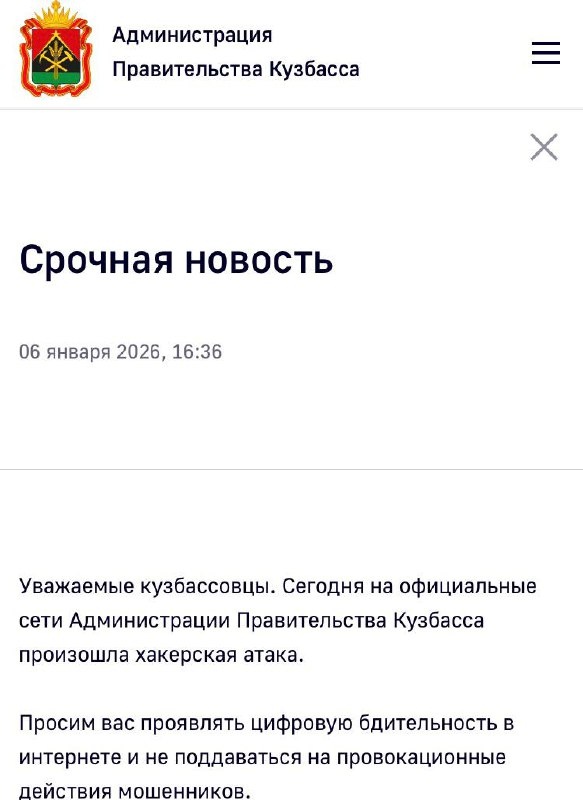 Хакерская атака произошла на аккаунты правительства Кемеровской области в соцсетях, сообщила пресс-служба администрации региона. В опубликованных постах заявлялось о якобы задержании губернатора региона Ильи Середюка. «Сегодня на официальные сети администрации правительства Кузбасса произошла хакерская атака. Просим вас проявлять цифровую бдительность в интернете и не поддаваться на провокационные действия мошенников», — сказано в сообщении властей. Подписаться| Прислать новость| Помочь бустами
