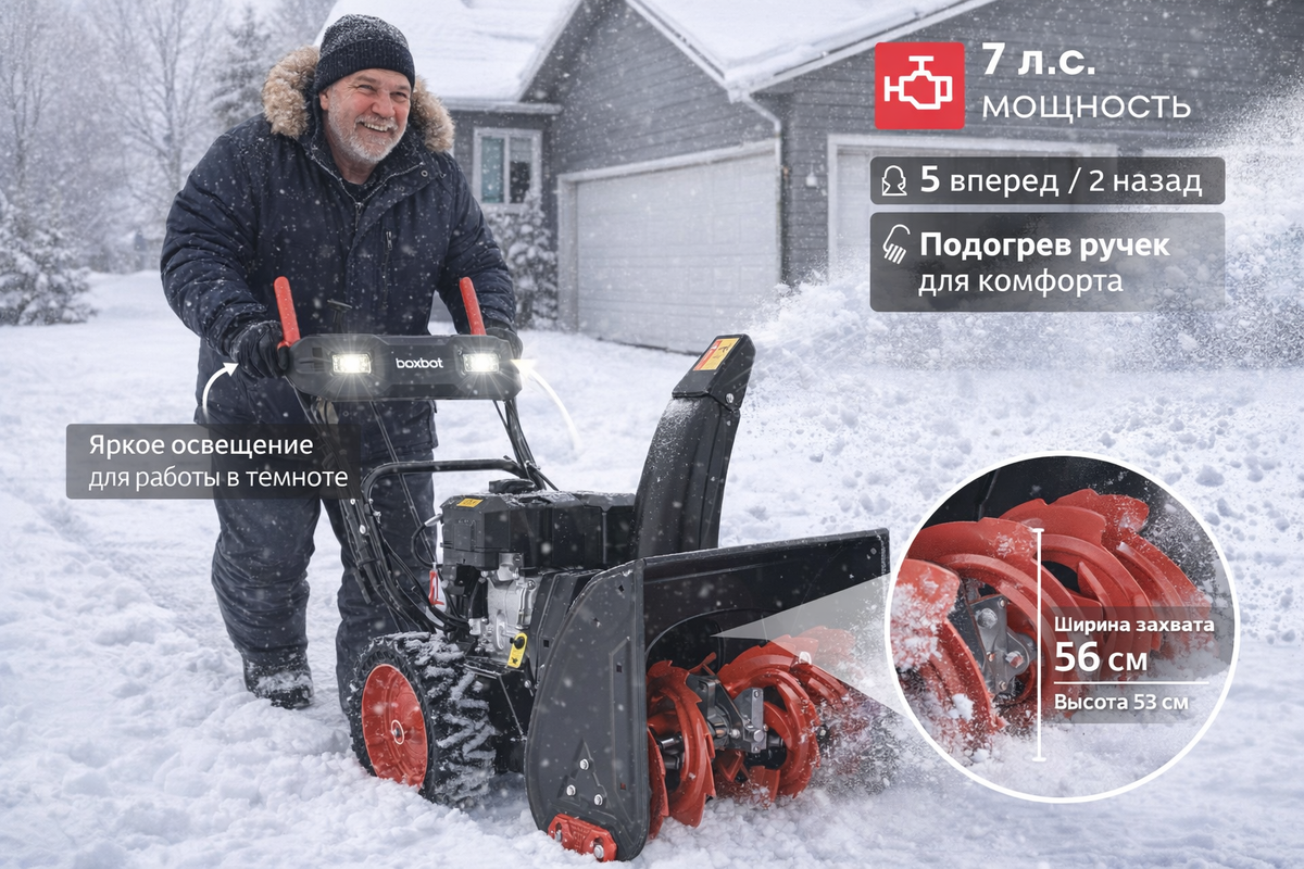 Ключевые слова: снегоуборщик бензиновый, Boxbot GS 755X, самоходный снегоуборщик, лучший снегоуборщик 2026, уборка снега дома, снегоуборщик для дачи.
