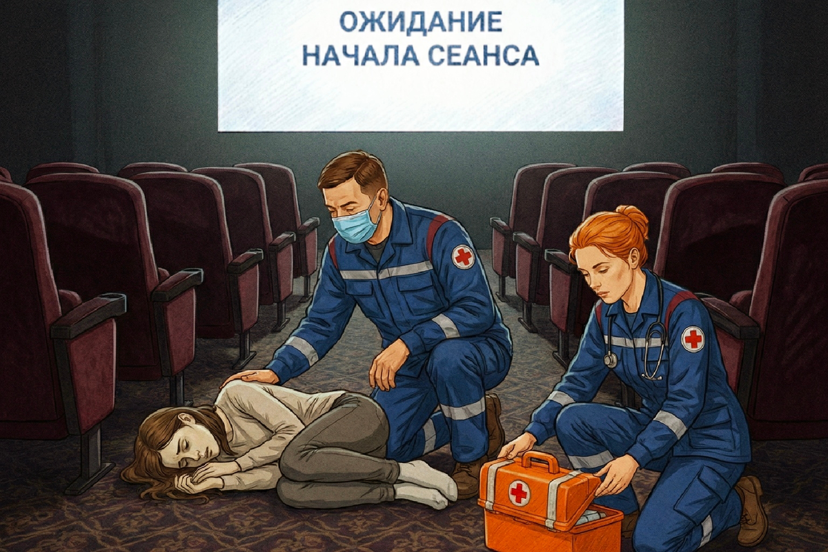 – Пиши, – раздалось из рации. – Ребёнок 14 лет, боли в животе, тошнота, головокружение. В зале кинотеатра. Вызывает администратор. – Как понял?