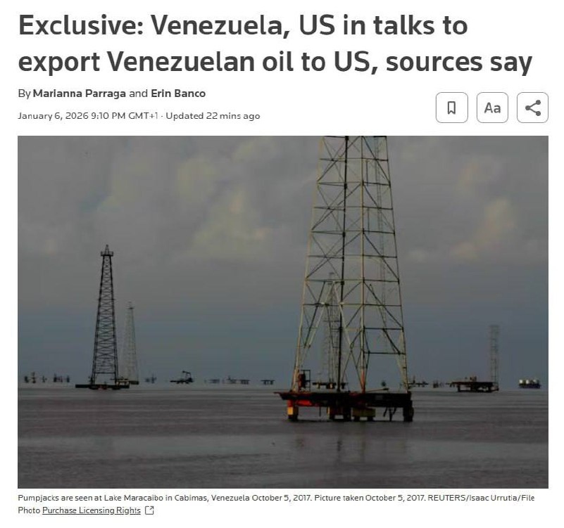 Венесуэльские и американские официальные лица обсуждают экспорт венесуэльской нефти-сырца на американские НПЗ, сообщает Reuters со ссылкой