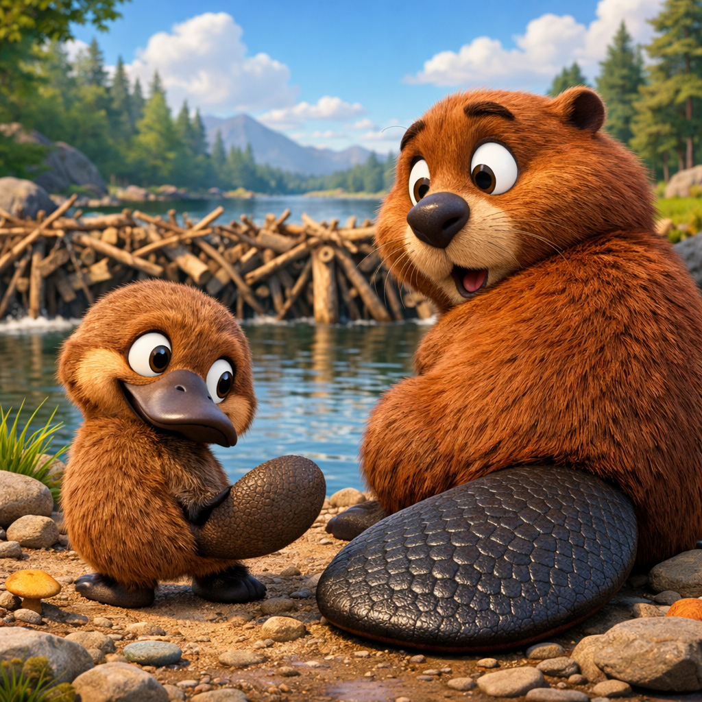 И вот, оставив уютное гнездо, Рики отправился в путь, чтобы найти свою семью. Беспечно шлепая перепончатыми лапками, Рики бежал по тропинке, пока впереди не показался ручей. На берегу ручья обнаружился старый бобр, аккуратно складывающий бревна и веточки друг на друга. А хвост... сердечко Рики забилось быстрее - хвост был похож на его собственный как две капли воды!