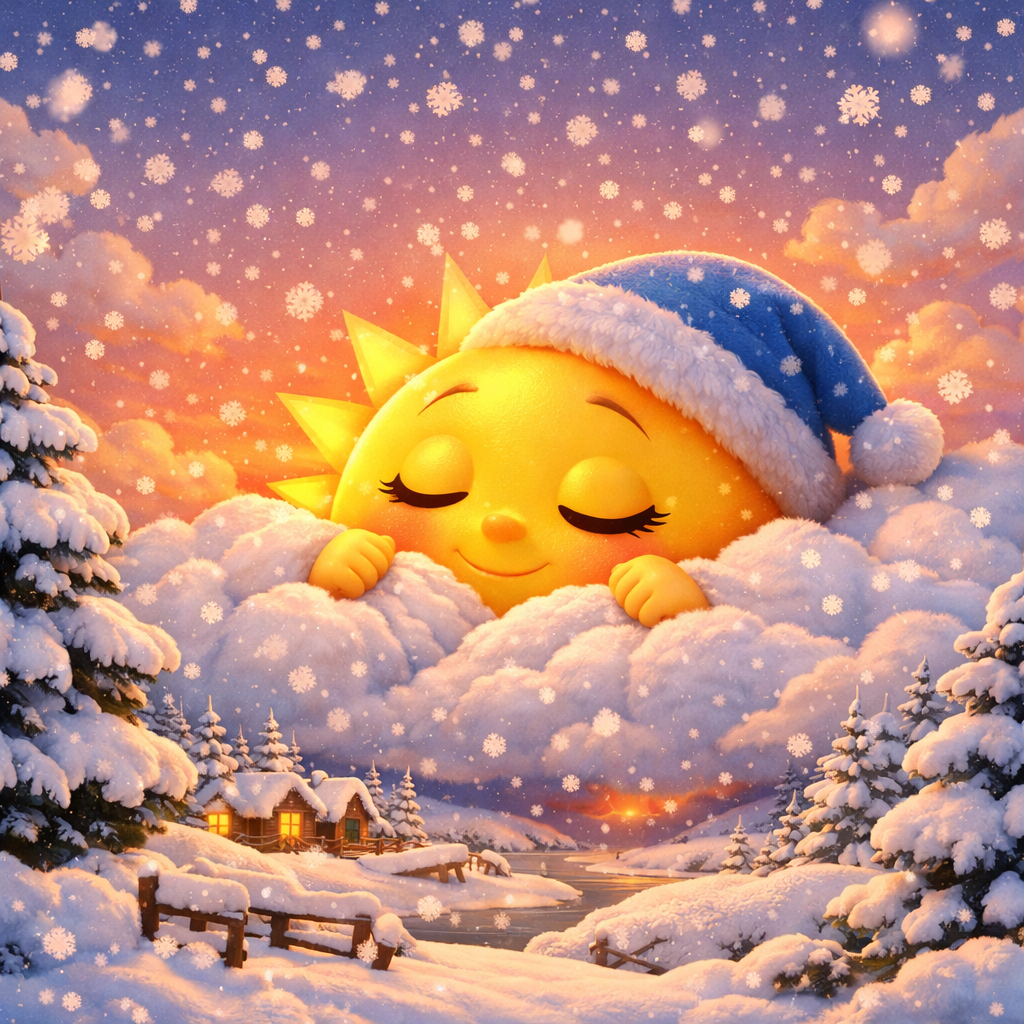 Жила была Красота неземная — Солнце ясное да золотое. Всё лето трудилось оно, землю согревало, людям радость дарило. Но вот пришла зима, небо затянулось облаками серыми, снег повалил пушистый. Стали дни короче, ночи длиннее, спать захотелось Солнышку. Решило оно отправиться в страну зимнего сна, отдохнуть, набраться сил перед новым летом.