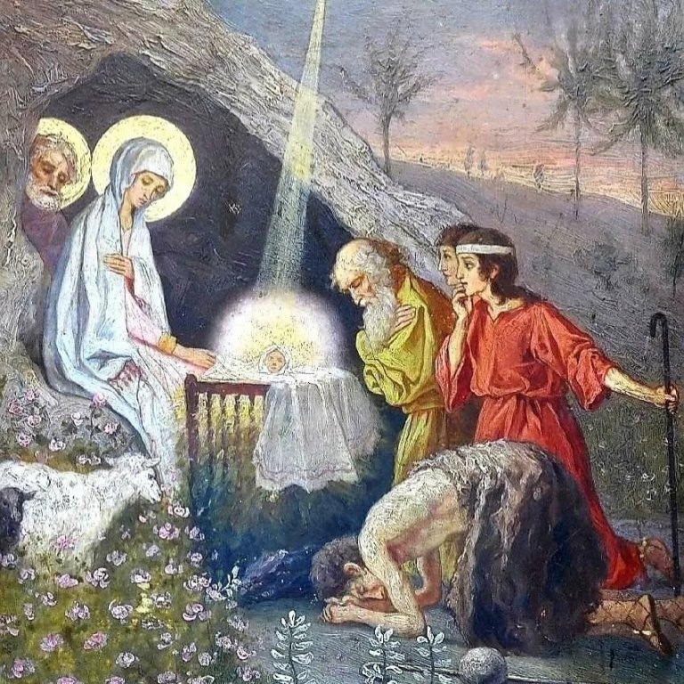 Но ценность картины в том, что она не про “идеальные условия”, а про рождение смысла там, где по‑человечески тяжело. Нестеров соединяет сцену Рождества с поклонением пастухов: Мария и Иосиф в пещере, пастухи — простые люди, пришедшие первыми.