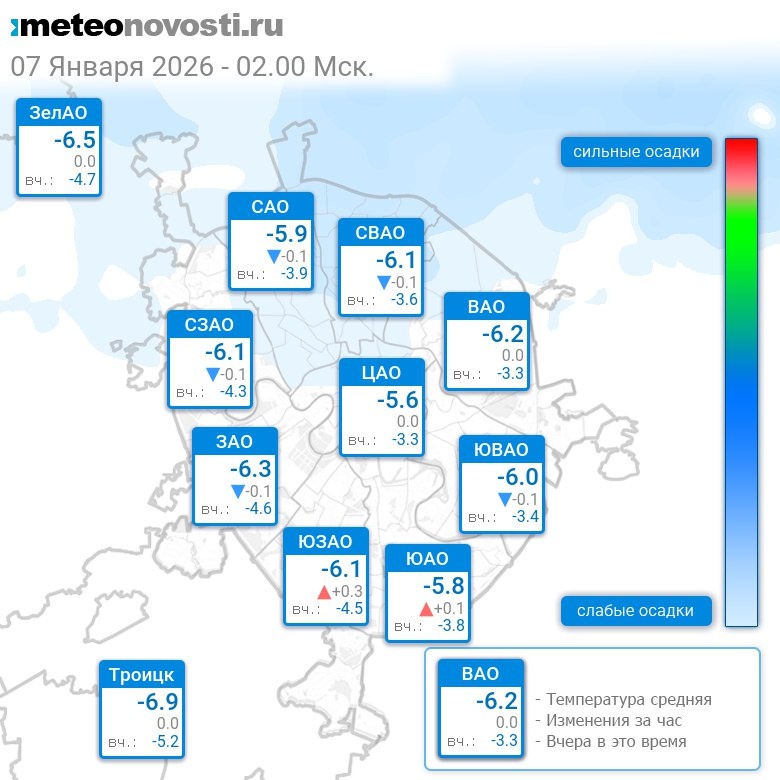 В 2:00 в Москве было от -6.9°C до -5.3°C, средняя температура -6°C #погода #Москва #зима #температура #7января #среда