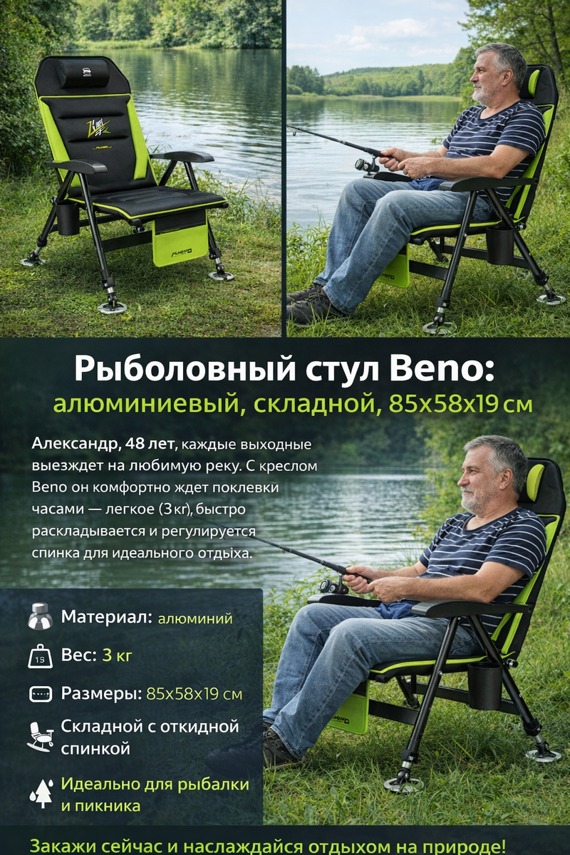 Лучший рыболовный стул Beno: алюминиевый складной компаньон для рыбалки и пикника