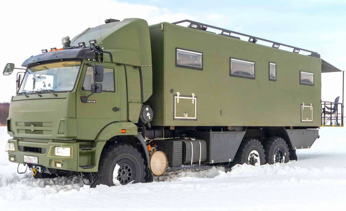 Проект построен на базе КАМАЗ-43118 и подходит для эксплуатации в любое время года. Внутри — спальни, кухня, душ, отопители Webasto и кондиционер. ➕Главная фишка — складная терраса с электроприводом, которую можно использовать как балкон. Стоимость — 28.600.000₽