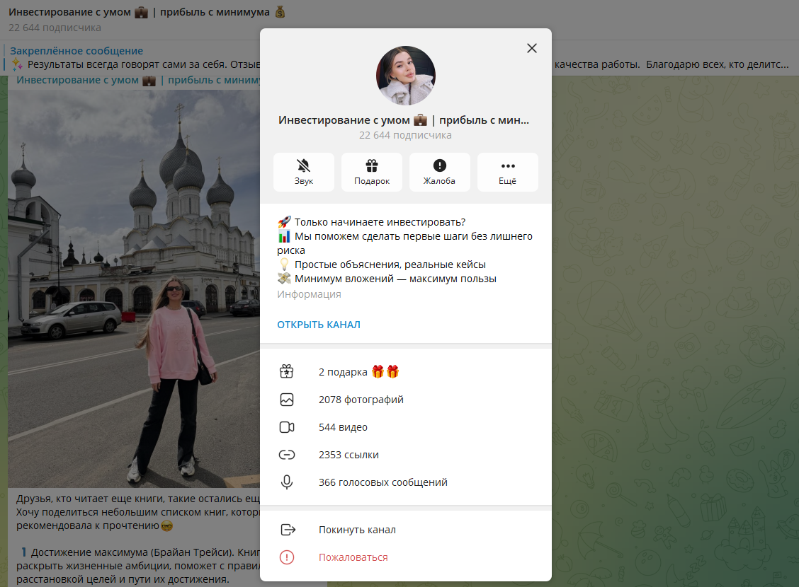 Телеграм-канал «Инвестирование с умом | прибыль с минимума» подаётся как площадка, где девушка по имени Елизавета якобы помогает увеличить криптовалютный депозит с минимальных сумм. Автор обещает быстрый рост капитала, «памп-стратегии» и поддержку команды трейдеров.