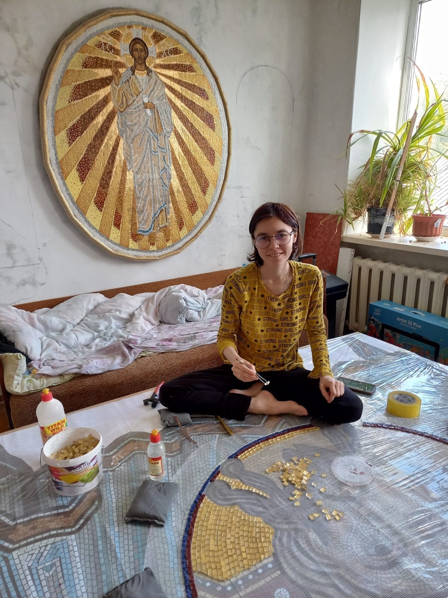 В Западно-Казахстанской области появляются все новые юные таланты, которые делают наш мир лучше, украшая его своим творчеством. Одна из них – молодая художница Мария Ромм создает мозаичные панно и реставрирует старые иконы, за которые не всегда даже берутся маститые художники. Совсем недавно у Марии прошла выставка картин, которую предложил провести у себя директор ресторана «Слобода» Андрей Маслов. - Выставка длилась с 10 октября по 28 ноября. Это была моя первая персональная выставка. 44 картины написаны в стиле «Ponsisme», в котором я работаю третий год, и за это время создала около 160 произведений. Большинство из них крупные полотна размером полтора метра на метр. Этот стиль я придумала сама – рисую души людей, Богов и космических сущностей, - говорит юная художница. Талантливый человек – талантлив во всем. Чем бы не увлекалась Мария, все у нее получается. Ее отец - уральский архитектор Дмитрий Волкогонов, передал дочери любовь к искусству. Мария занимается мозаикой – к закрытию в
