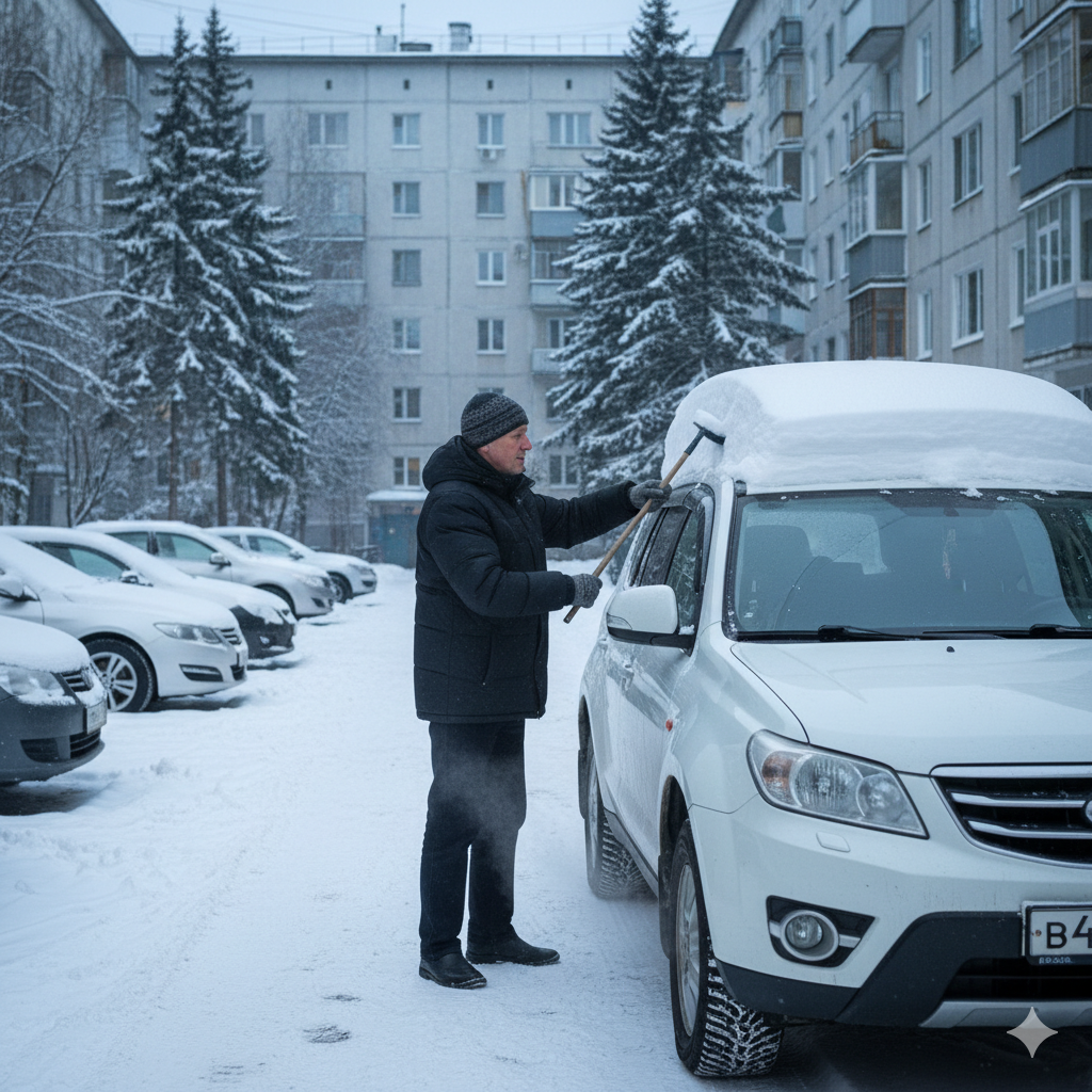 Потратить лишние 3-4 минуты утром на то, чтобы смести сугроб с крыши — это вклад в общую безопасность.