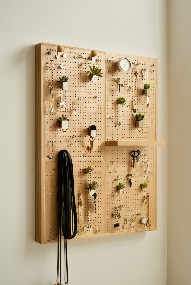 Модульный органайзер (например, перфорированная панель) дает свободу. В отличие от стационарных полок, его можно постоянно трансформировать под текущие задачи. Сегодня это органайзер для ванной, завтра — вешалка для шарфов. Эта гибкость делает его универсальным инструментом для организации пространства и поддержания порядка в вещах. Это одно из самых лучших интерьерных решений для тех, кто любит перемены!