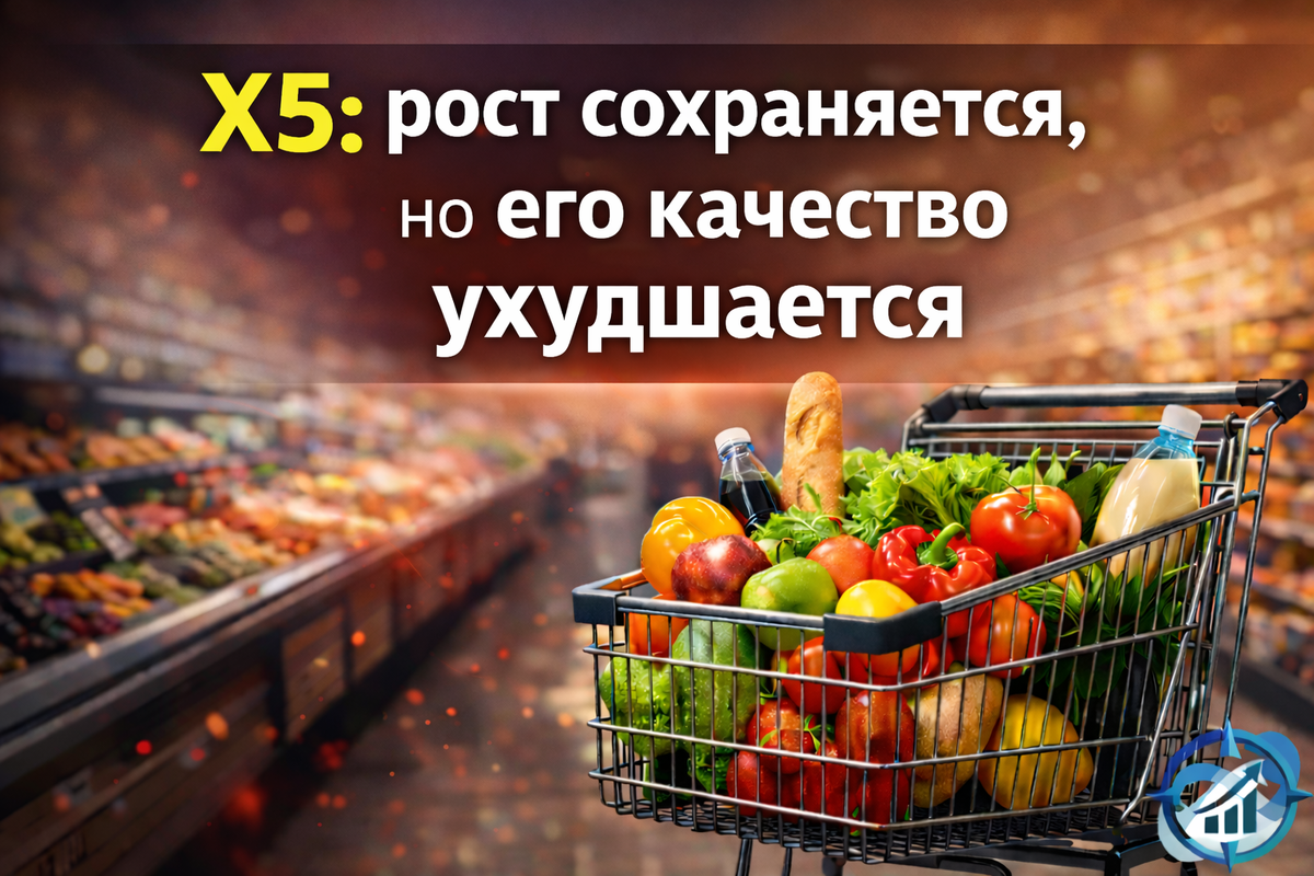 X5 Group — крупнейший продуктовый ритейлер в стране по обороту и числу торговых точек. По мере роста масштаб бизнеса всё сильнее влияет на структуру выручки, динамику прибыли и ожидания инвесторов. По формальным показателям компания продолжает расти. Выручка LTM составляет около 4,5 трлн ₽ против 3,9 трлн ₽ годом ранее, сеть расширяется, форматы и логистика остаются ключевыми элементами модели. При этом всё большее значение приобретает не сам факт роста оборота, а источники этого роста. По LTM средний чек у X5 не демонстрирует роста. Это означает, что увеличение выручки обеспечивается не ростом цен и не изменением структуры покупательской корзины, а в основном расширением сети и оборота. Для зрелого продуктового ритейла это рабочая, но капиталоёмкая модель, которая слабо конвертируется в рост маржинальности и требует постоянных инвестиций. Это отражается в финансовых результатах. EBIT вырос до ~187 млрд ₽ против ~140 млрд ₽ годом ранее, однако EBITDA практически не изменилась и составл