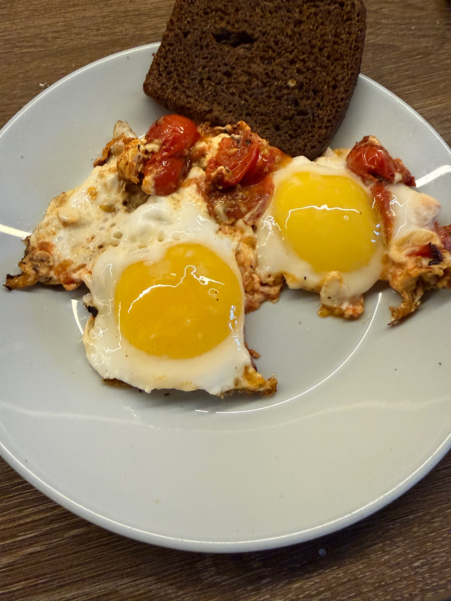 Еще перед Новым годом, в середине декабря, я сделала запас продуктов. В первую очередь - долгого хранения: бакалея, мясо, которое заморозила. Поэтому я в январе в магазины не хожу, придерживаюсь ноу шопинга и в этом вопросе: уже продержалась 2 недели: Но новогодняя неделя продолжила меня радовать подарками и это нашло свое отражение в меню. Так, меня угостили деревенскими яйцами - не сравнить с магазинными! Поэтому я дважды готовила яичницу с овощами. Также делала оладки: на завтрак на 2 дня и на перекус студенту. Забрызгала всю плитку, потом убирала. Когда мне утром захотелось селедки - я встревожилась)))а затем поняла: это компенсация за перебор сладкого Потом до конца недели я доела эту баночку селедки с черным хлебом на обед. На фото вместо масла - буррата. Это очень вкусно! Вообще, в Латвии одно из национальных блюд - селедка с творогом и зеленью: это действительно вкусно и необычно, я ела неоднократно во время поездок в эту нынче недоступную страну. Юрмала! Я помню, как это