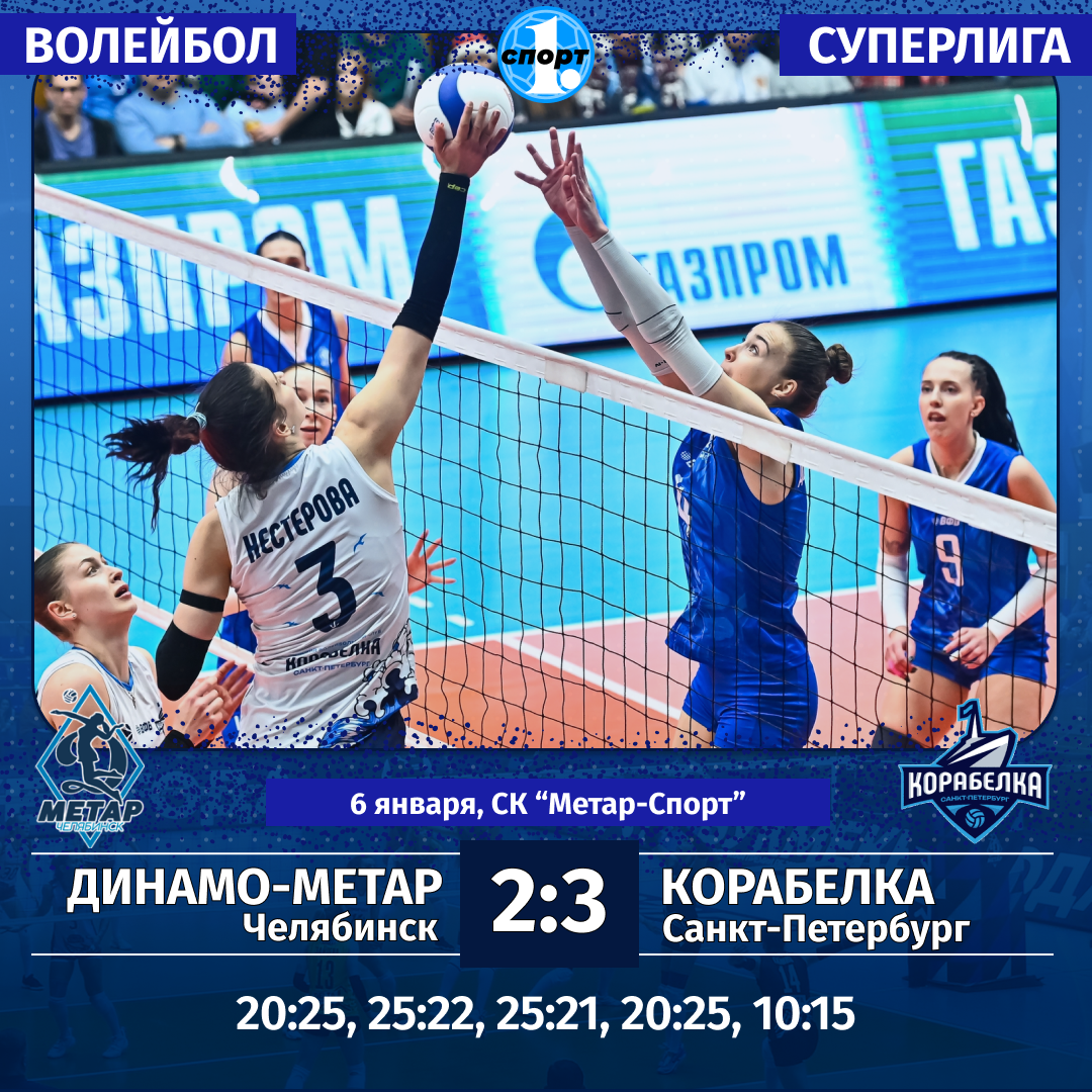 В женской волейбольной Суперлиге неудачно начала новый год команда «Динамо-Метар». Челябинки в равном поединке уступили на своей площадке в пяти партиях питерской «Корабелке». Подопечные Алексея Дешина рискуют оказался за бортом плей-офф по итогам регулярного чемпионата, сообщает корреспондент ИА «Первое областное». Игра с первых минут отличалась сбалансированностью и зрелищностью. В первой партии преимущество захватила команда Санкт Петербурга: благодаря эффективным атакам Виктории Бобровой они повели в счете — 11:8. Несмотря на упорное сопротивление хозяек до середины партии, в концовке Елизавета Нестерова вместе с Александрой Захаровой обеспечили петербурженкам победу в партии — 25:20. Вторая партия стартовала с впечатляющей подачи Ирины Филиштинской: гости моментально получили перевес в три очка. «Метар» эффективно организовал блокирующую линию, нейтрализовав атакующие действия Елизаветы Нестеровой. Это позволило команде вырваться вперед — 13:10. На финишном отрезке команды шли вро