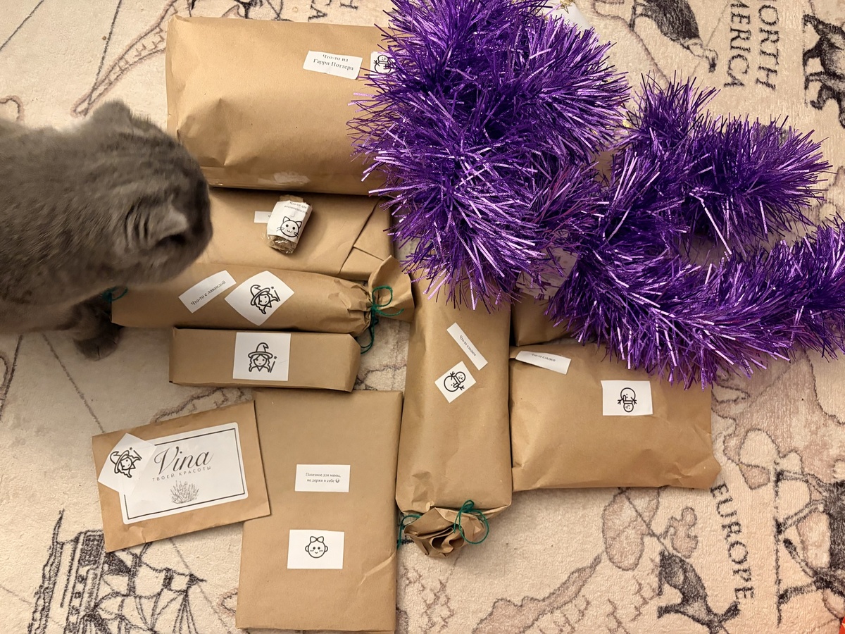 В очередной раз убеждаюсь, что я была очень хорошей девочкой в этом году!!! Сначала я купила две непотрошёные форели, обе были с икрой! Потом я приехала с «каникул» у родителей, а у меня в аквариуме +3 улитки. Теперь вот подарок от самого лучшего Деда Мороза! Я долго не шла за своим подарком (мы уехали и вот вернулись), точнее был послан муж гонец, который из ПВЗ вопрошал, что он прет? Что же, я уложила спать дитя и мужа и села распаковывать. Самое важное это избавиться от шикарной упаковки, ибо серый контроллер жрет бумагу, ниточки, шнурки, мишуру и вообще, все что не пригодно в пищу котам (чё ему не хватает, я не знаю, пасту даем, корм хороший, кошачью траву как и иные растения он не ест) У меня есть коллекция того, что я проглядела, а потом это было извлечено из желудка и кишечника кота, в том числе и хирургически (фото в комментарии). Фото в упаковке: Быстро все снимаем и причем, в том числе мишуру. Подарок для самой маленькой распаковала очень аккуратно, чтобы потом запаковать и