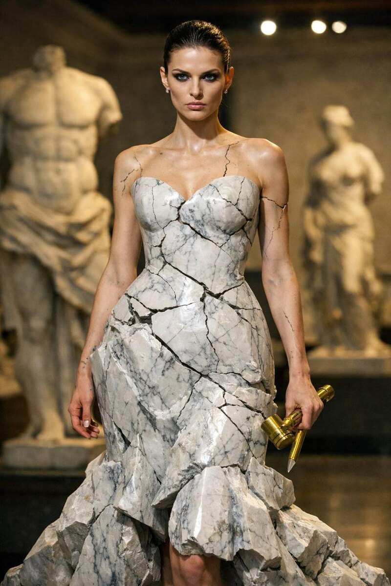 🗣 #Prompt : A model wearing a dress carved from solid white marble with grey veins. It looks impossibly heavy and cold. Cracks in the stone. A gold chisel and hammer accessory in hand. Museum lighting, ancient status. #gemini #midjourney #grok #leonardoai #DALLE3 #stablediffusion #aiart #aiartist #neuralnetworks #deeplearning #aicommunity #aifantasyart #aifantasy #artificialintelligence #discord #beyondart #midjourneyai #graphicdesign Leonardo.ai