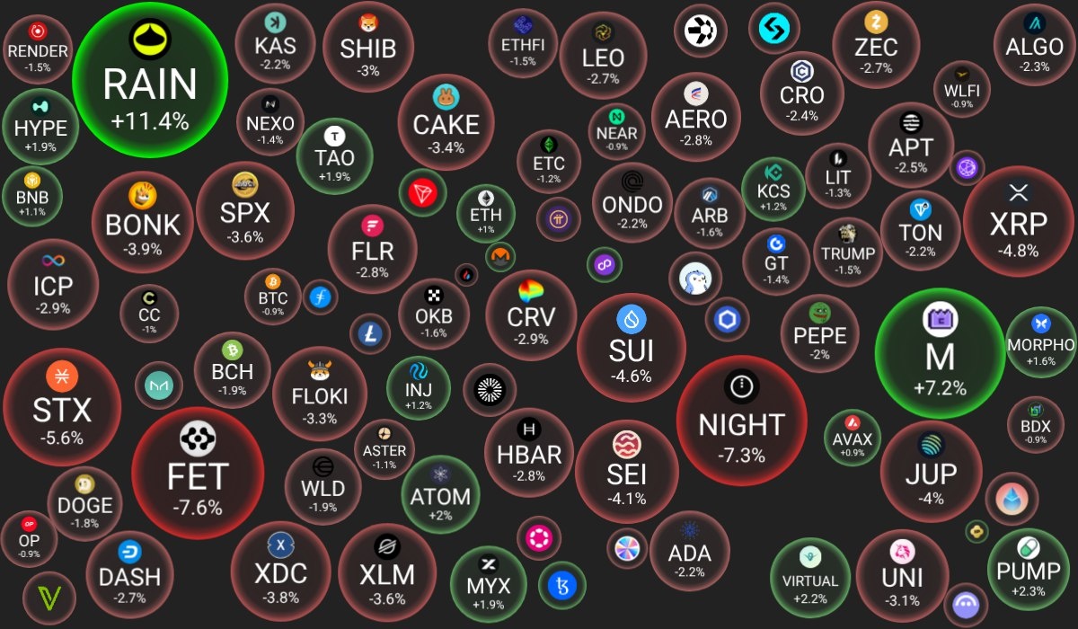 🗓 07.01.2026 09:30 по Москве. 🔗 Посмотреть на сайте 📈 Лидеры роста (из ТОП-100): 🟢 Rain (RAIN): $0.0090 (+11.4%) 🟢 MemeCore (M): $1.6632 (+7.2%) 🟢 Pump.fun (PUMP): $0.0025 (+2.3%) 📉 Лидеры падения (из ТОП-100): 🔴 ASI Alliance (FET): $0.2863 (-7.6%) 🔴 Midnight (NIGHT): $0.0781 (-7.3%) 🔴 Stacks (STX): $0.3621 (-5.6%) 🔍 Основные метрики: 🔴 Общая капитализация: $3181.29 млрд (-0.80%) 🟢 Общий объем торгов: $135.18 млрд (+9.58%) 🔴 Доминация Bitcoin: 58.22% (-0.14%) 🟢 Доминация Ethereum: 12.35% (+0.22%) 🔴 Индекс страха и жадности: 42 / 100: СТРАХ (-2) 🔴 Индекс Альтсезона: 23 / 100: БИТКОИН-СЕЗОН (-3) 📖 Интересно почитать: 👉 Как защитить свои криптоактивы: советы по безопасности 😻 Наши сервисы и бонусы: ⛏️ Profit-mine.com - калькулятор майнинга криптовалют на GPU/CPU/ASIC 📈 Gate - 20% скидка на комиссии при торговле на споте и фьючерсах