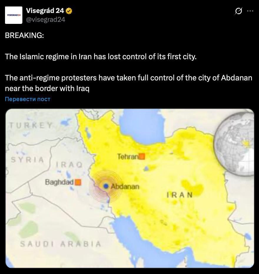 Протестующие против режима полностью взяли под контроль город Абданан, расположенный недалеко от границы с Ираком.