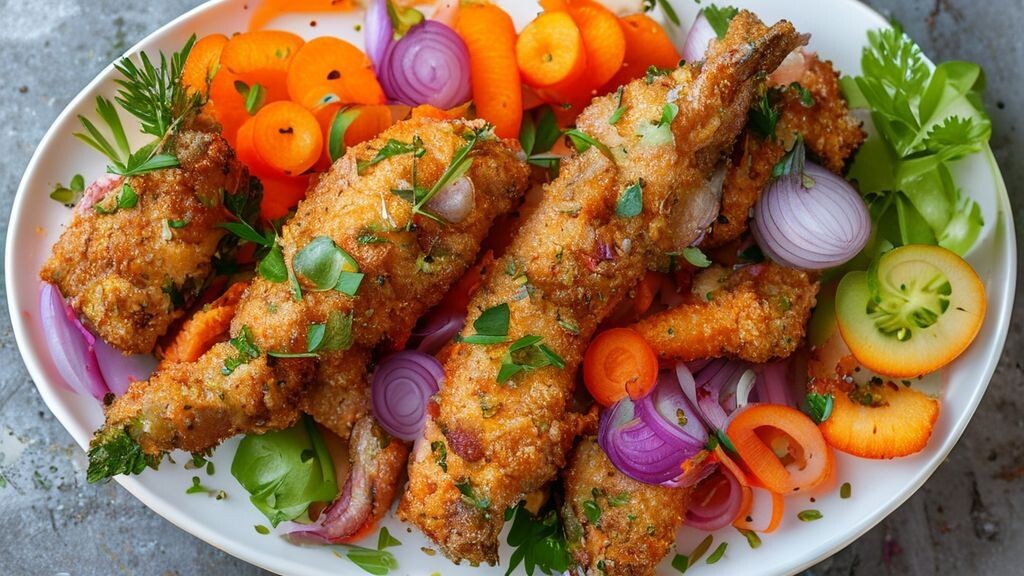 - Подача: Готового жареного сома аккуратно переложите на сервировочное блюдо. Для придания блюду праздничного вида и дополнительного вкуса, украсьте его свежей зеленью (укропом, петрушкой), морковью, нарезанной фигурками (например, с помощью фигурного ножа или формочек для печенья), маринованным луком и тертым хреном, заправленным уксусом. Отдельно к жареному сому традиционно подают отварной или жареный картофель, а также легкий салат из свежих овощей, который прекрасно сбалансирует насыщенный вкус рыбы.