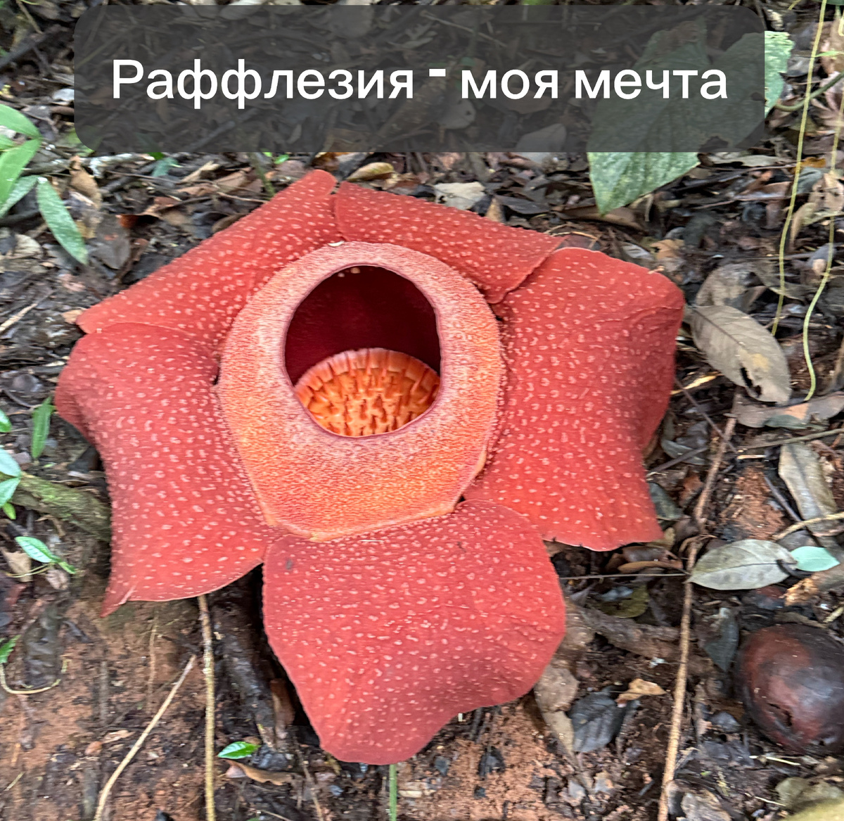 Как сейчас помню урок биологии и цветок раффлезии на фото в учебнике. Такое уникальное растение-паразит было трудно забыть: без корней (лишь присоски), без стеблей, без листьев и только огромный цветок (до 1 метра в диаметре, весом до 10 кг), который воняет тухлым мясом. Тогда я подумала, вот было бы здорово его увидеть вживую! Но это было так далеко и нереально, что мечта лишь зародилась и в круговороте учебы/работы благополучно забылась.